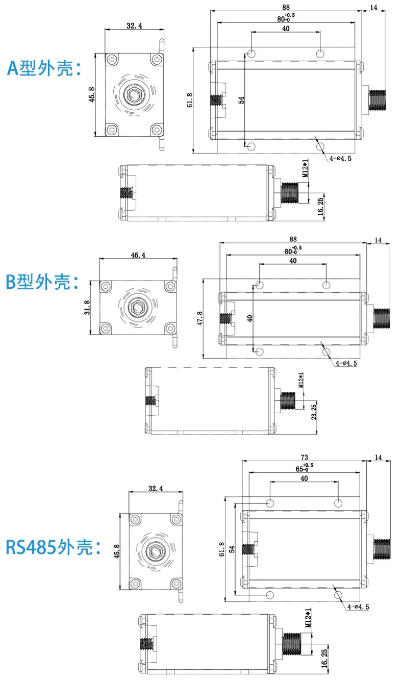 工作電流 | 電壓型<45mA,電流型<25mA,RS485型<40mA | |||||||