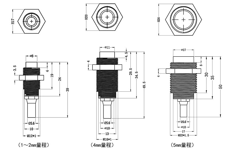 5mm | Φ17mm探頭 | 11mm | 50mm | 標(biāo)準(zhǔn) | M18X1.0 |