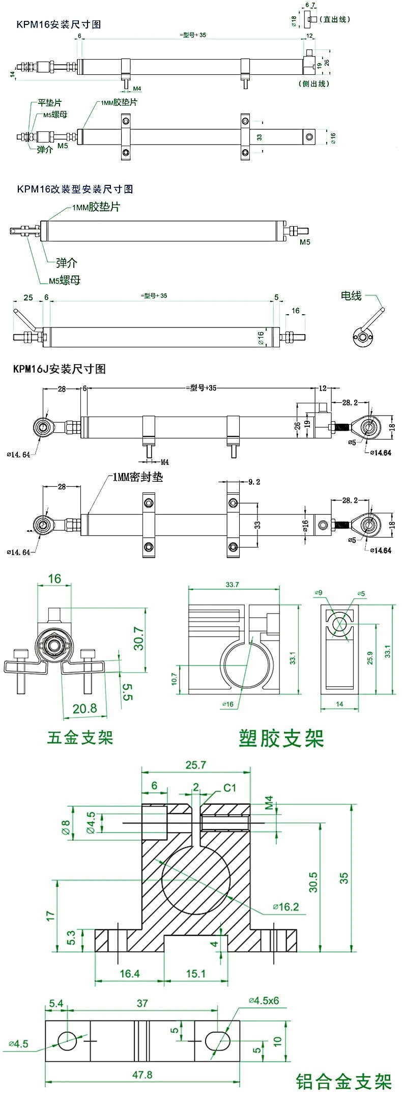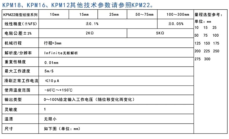 KPM16微型鉸接式位移傳感器的參數(shù)說明及安裝尺寸: