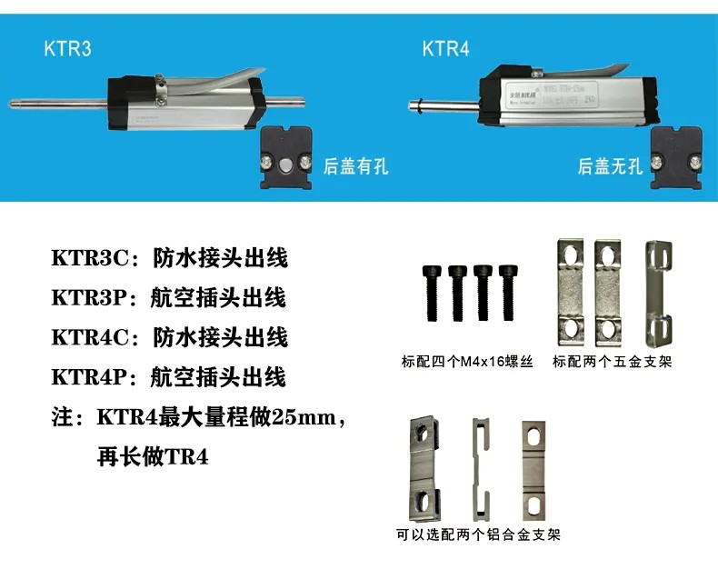 KTR內(nèi)置彈簧自復(fù)位式位移傳感器選型及技術(shù)參數(shù):