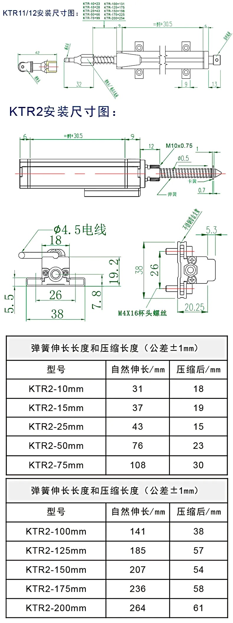 KTR系列外置彈簧自復位式電阻尺的安裝尺寸: