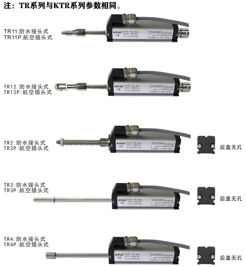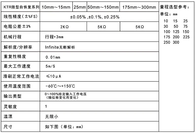 TR系列外置彈簧自復式位移傳感器的參數說明:(TR系列參數參照KTR11和KTR12及KTR2系列)