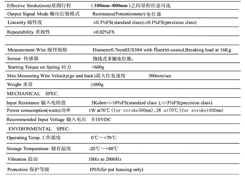 WS-S拉繩拉線式位移傳感器及其特點:全防護外殼為鋁合金材質,更加美觀大方,拉繩可傾斜45°往外拉出,且不影響線性精度及其重復性。