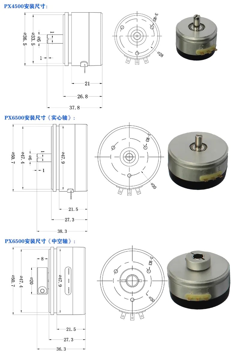 PX系列磁感應角度位移傳感器安裝尺寸: