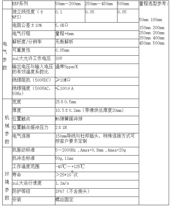 KEP無電刷防水防塵位移傳感器特點:
