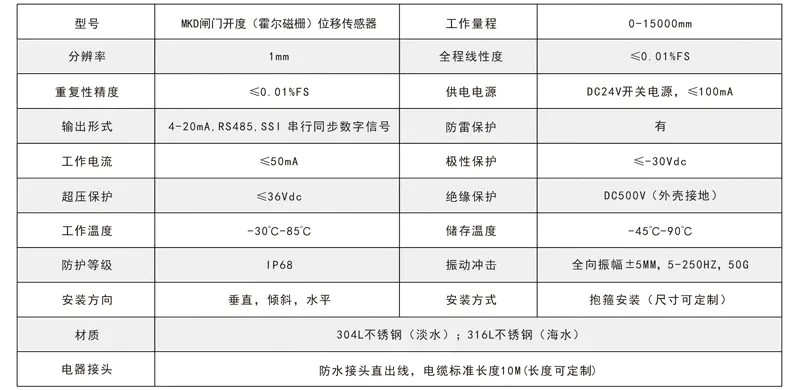 四、閘門開度(霍爾磁柵)位移傳感器選型: