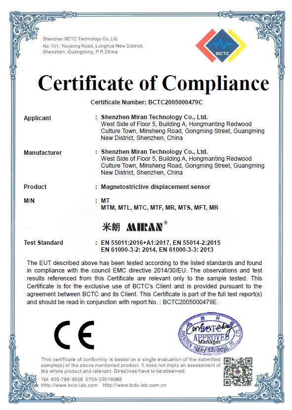 您的位置:主頁  > 榮譽資質  > 磁致尺CE認證