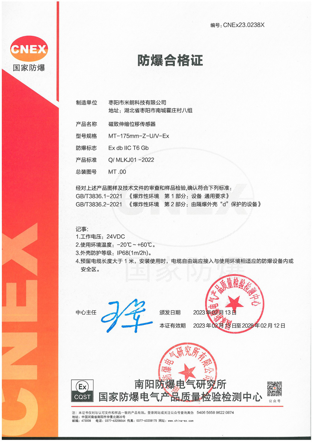 您的位置:主頁  > 榮譽(yù)資質(zhì)  > 磁致尺防爆證書IIC級