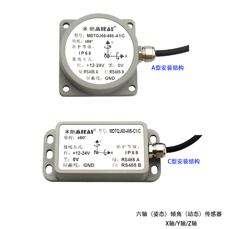 六軸(姿態)傾角(動態)傳感器內部使用數字型MEMS動態芯片,可測量運動載體的姿態參數(橫滾、俯仰以及方位角),適用于運動或振動狀態下的傾角測量。產品內置加速度和陀螺傳感器,集成了卡爾漫濾波算法,從而可測量運動或振動狀態下的載體實時運動數據。產品RS485/232/TTL等信號輸出模式可選,擴展性強。