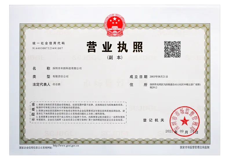 深圳米朗公司營業執照