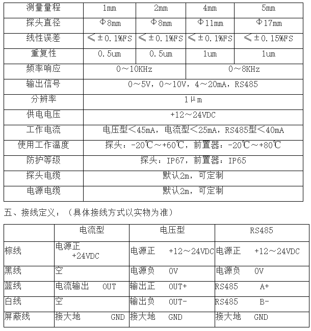 四、ML33HP高精度電渦流位移傳感器技術(shù)參數(shù):